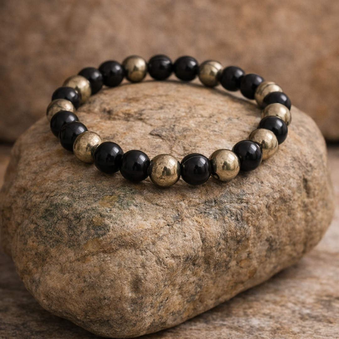 Billionare Bracelet – Attract Wealth & Stay Protected. The Richie-Rich Bracelet is crafted with the powerful energies of Pyrite and Black Obsidian, two crystals known for their strong connection with prosperity and protection. Pyrite is believed to attract financial growth, success, and new opportunities, while Black Obsidian acts as a protective shield against negativity and buri nazar. This bracelet helps clear money blockages, supports better decision-making in financial matters, and encourages confidence when working toward your goals. It keeps your energy grounded and protected, allowing you to stay focused on growth and stability. Whether you are building your career, running a business, or simply looking to improve your financial flow, this bracelet serves as a reminder to stay positive, determined, and protected. A meaningful gift for someone facing financial challenges or starting a new journey toward success and abundance.